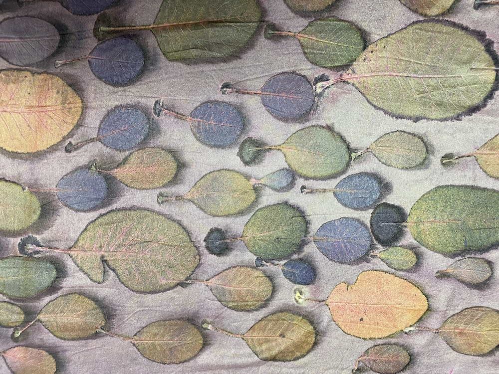 For the exhibition, Elisabeth shows her work using Cotinus leaves and natural dyes from Scotland. The pieces were treated and botanically printed with Cotinus leaves and are part of “The True Colour of the Cotinus” project, a Global Online Eco-Printing project which offers online workshop to participants. It started during the COVID-19 pandemic as a way to connect isolated Eco-printers from all over the world with a communal simple technique to follow.