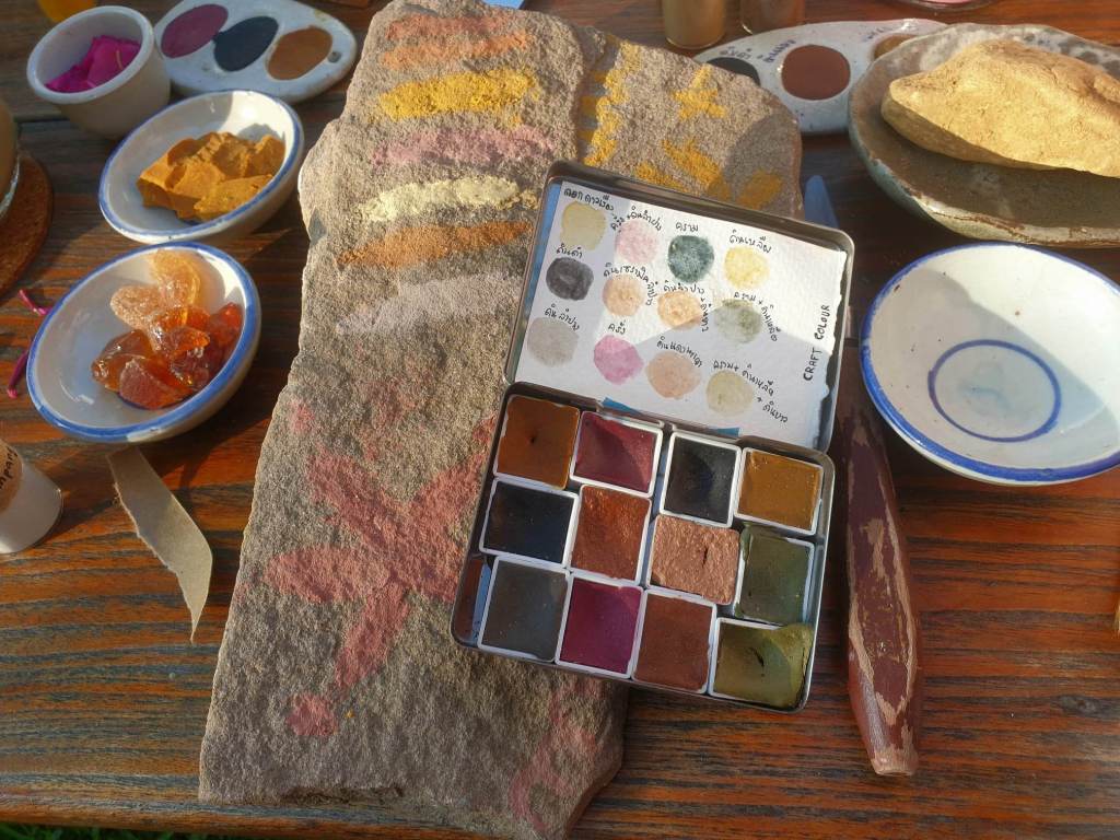 In this workshop, Pornpimon Mingmitmee will guide participants over 3 hours to make 12 watercolour paints. The workshop is a process of watercolour making and mixing colours. While painting, the participants will observe their mind and listen to their inner voices. The chosen colours and tones reflect each person’s identity, represent feelings, sooth and revitalise the spirit.