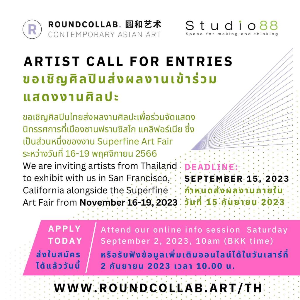 Exploring Boundaries: Thai artists are invited to exhibit in San Francisco through Studio 88 Artist Residency and ROUNDCOLLAB Contemporary Asian Art Partnership. Apply by 15 September 2023.
