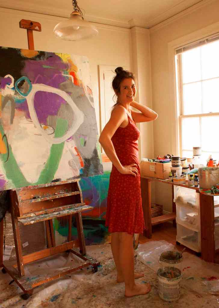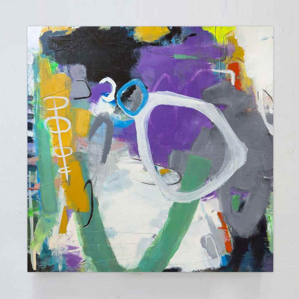 Her abstract compositions are created through layers of color, gestural lines, and unexpected marks, all of which are applied, removed, and reworked through brushes, spatulas, and sponges. The result is art that feels alive—constantly morphing and evolving, much like the emotions and experiences it seeks to capture.