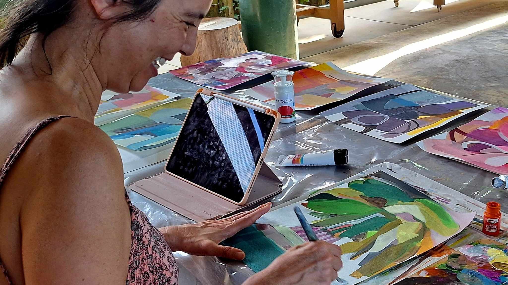 A highlight of my stay was leading an intuitive painting workshop for residents of a local assisted living center. I challenged myself to develop fun and enriching exercises to allow participants to release judgment and paint with excitement, confidence, and ease.
