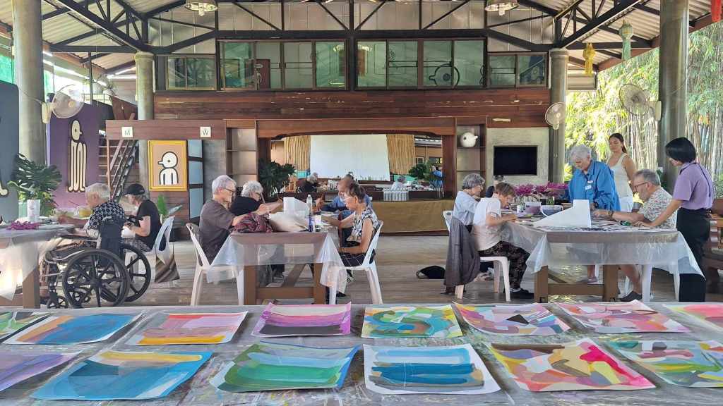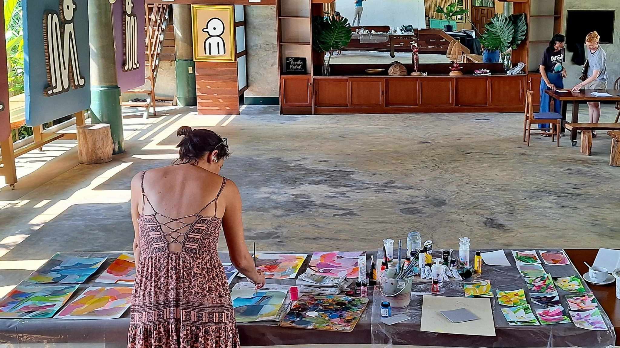 Michele de la Menardiere embraced her residency at Studio 88 in Doi Saket, Chiang Mai, Thailand, with creative vigor and a connection to the lush surroundings. Immersed in an environment of serene rice fields and vibrant flora, she created over 25 works of art, ranging from floral studies to abstract pieces. Her daily life balanced art-making with cultural explorations, intuitive painting workshops, and collaborations with local artists. Michele also showcased her work in a small exhibition and engaged with the community through creative outreach.