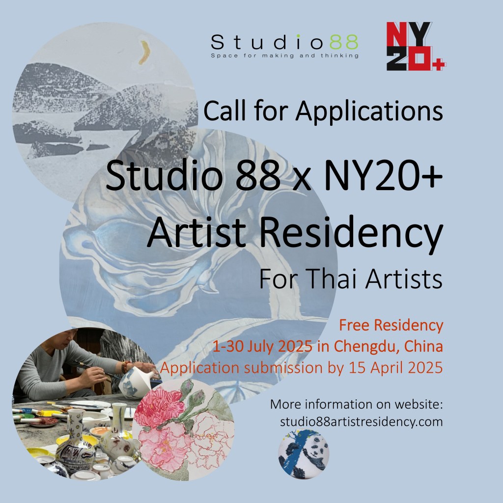 We are excited to announce the Studio 88 x NY20+ Residency for Thai Artists and invite applications for the 2025 program. The residency will take place in Chengdu, China, from July 1 to July 30, 2025. Submission by 15 April 2025.