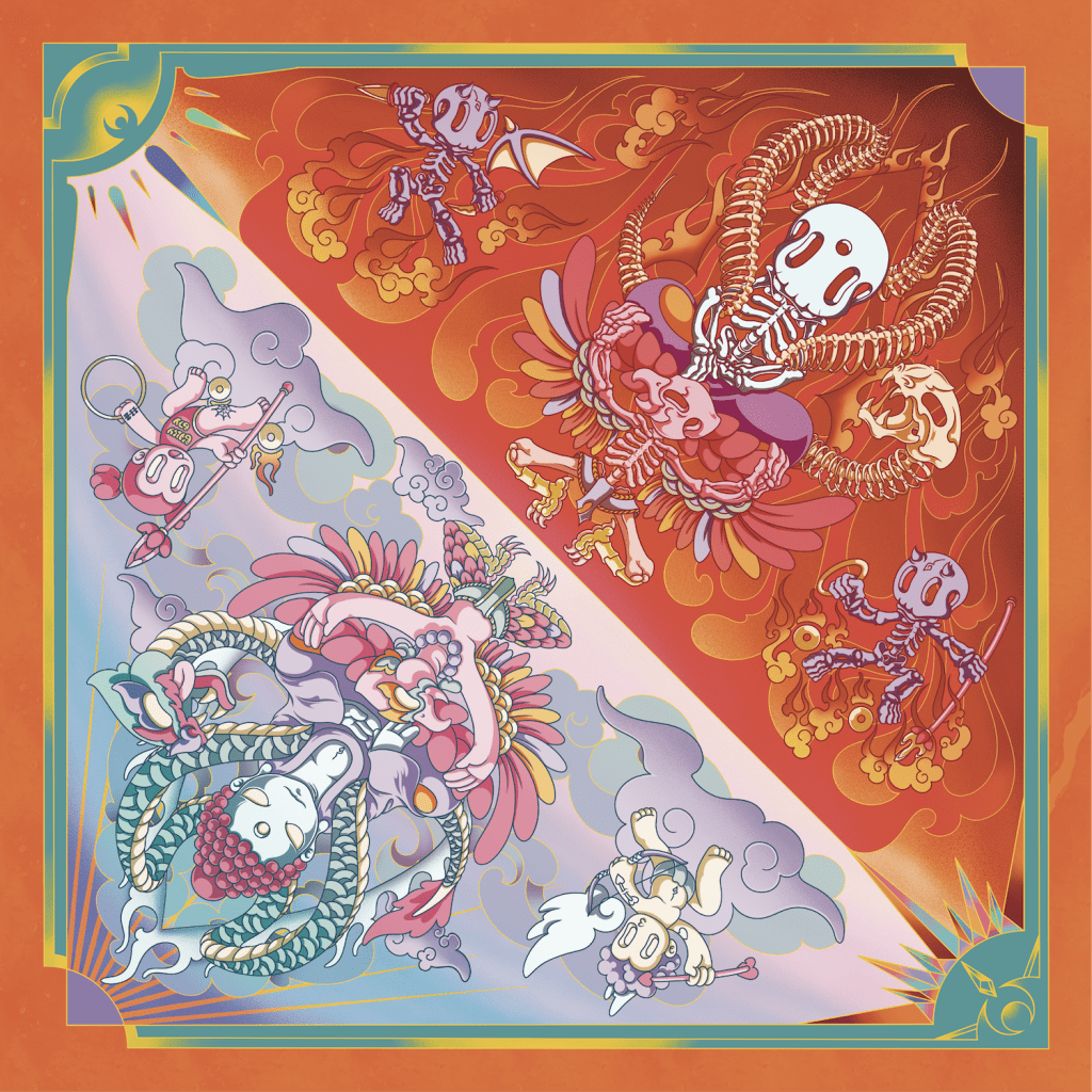 Wagu is a Thai illustrator from Bangkok whose work merges the spiritual imagination of Eastern mythology with contemporary visual language. Drawing from his upbringing in a Chinese Buddhist household, his art often blends cartoon and manga aesthetics with deeper reflections on belief, identity, and the sacred. His character-driven pieces, such as “Buddhie,” reimagine icons through a playful yet introspective lens.