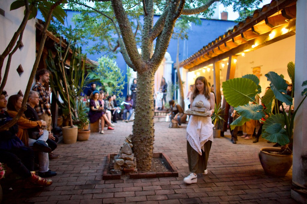In 2025, Katherine was awarded the Pocoapoco Artist Residency in Oaxaca, Mexico, where she created Stone Hug, a site-specific sculpture shaped by a lived struggle with authority—its weight and presence—offering the Ceiba tree as a site of relief. In 2024, she was awarded the Poor Farm Experiment Artist Residency in Little Wolf, Wisconsin, where she created Brick Purse, a publication and sculpture series of nine ready-to-wear statement purses. Featuring repurposed bricks sourced from The Poor Farm Experiment and locally culled fishline, the work offered a witty commentary on the hegemonic demands placed on women and was featured at TRYST, in association with the Torrance Art Museum in Los Angeles.