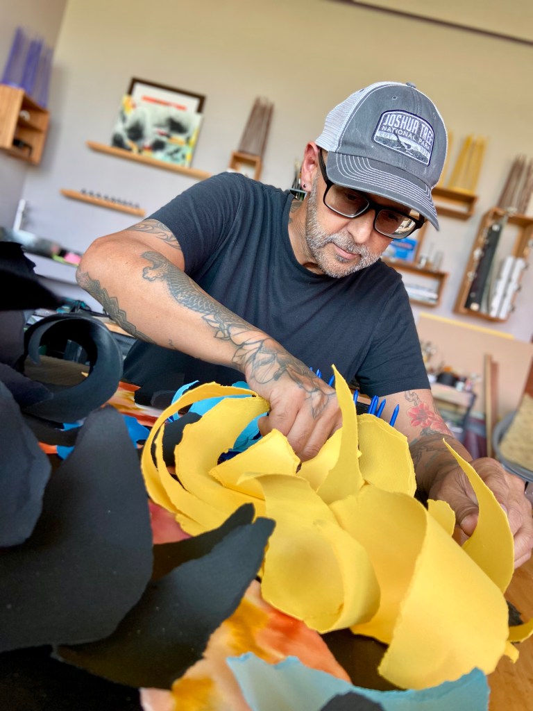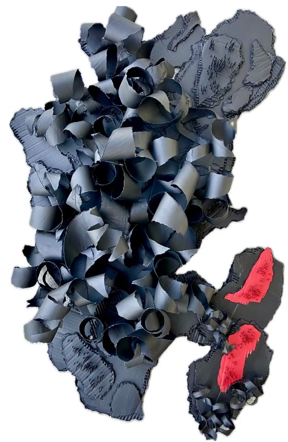 “As I address personal issues of pain, trauma and violence, I question whether these emotional issues assist the artist in controlling his creation, or these emotional issues allow the creation to control the artist. My creation of each piece, through the act of tearing paper and cardboard, is both deconstructive and violent, while reassembling the torn elements is reconstructive and composed, which addresses these emotional issues not only in the final completed work but in the actual creation of the work as well. This process allows me to explore the impact of these issues and the associated emotions in not only myself, but also as they pertain to others whether through abuse, migration or war.”